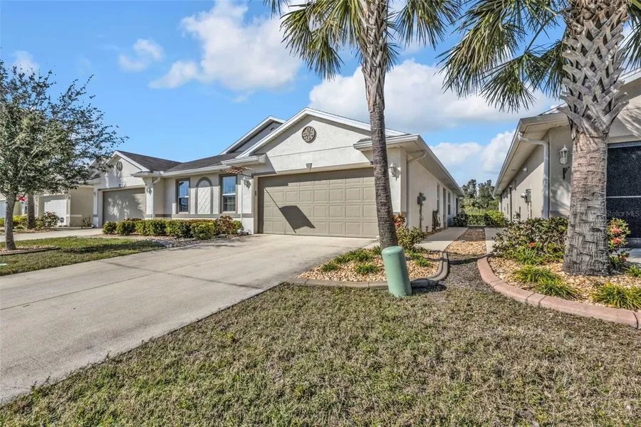 Beautiful LIKE NEW villa in desirable Waterford Estates awaits new owners! This 2 bedroom + den, 2 bathroom, 2 car garage block villa, built to current codes with hurricane protection has incredible features, like quartz counters, shaker style cabinetry, tile and upgraded carpeted floors, new light fixtures and stainless steel appliances, a large 2 car garage, perfect for your vehicles, bikes, or a golf cart, and a lovely screened back lanai with extended patio area and oversized backyard! This villa has great community amenities, like 24 hour gated access, sidewalks, two large, heated pools, a large clubhouse with gym, billiards, meeting space, pickleball courts, bocce, walking trails, and more! The community is golf cart friendly, too! It is nearby to downtown Punta Gorda, shopping, restaurants, boating, golf, schools, and is convenient to I-75 and the PGD airport! Schedule your showing today! BE SURE TO CLICK THE FULL VIRTUAL TOUR LINKS FOR DETAILS!