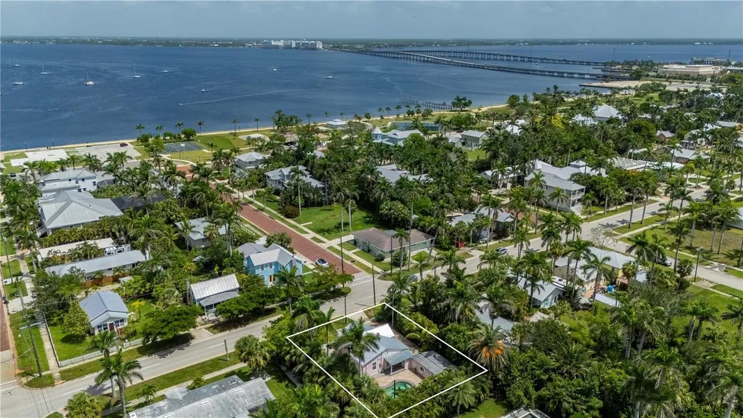 LOCATION IS EVERYTHING and this one delivers. In the heart of Punta Gorda’s historic district, this locally registered home blends classic character with modern comfort-just steps from Charlotte Harbor, the scenic Harbor Walk, Gilchrist Park’s pickleball and tennis courts, Fisherman’s Village, and a vibrant downtown full of restaurants, live music, and local markets. Behind its inviting facade with brick paver driveway, the home opens into a bright, open interior designed for everyday ease. A welcoming foyer leads into the spacious living and dining area, unified by new luxury vinyl flooring throughout. The kitchen features stainless steel appliances, abundant counter space, and direct access to the backyard-perfect for entertaining or relaxed coastal living. Off the living area, a private hallway leads to two well-sized bedrooms and two full bathrooms, including a beautifully updated main bath with dual sinks, a walk-in shower, and private access to the lanai. The newly added guest bathroom offers added privacy and convenience for visitors. Step outside, and everything slows down. Palm trees sway gently above a private pool, with space to lounge, grill, or drift off in a hammock. It’s a true backyard retreat designed for quiet enjoyment. The detached garage fits one car or provides bonus storage, and the fenced yard offers privacy with no HOA restrictions. Whether you're here for the season or something more permanent, this home’s unbeatable location and serene atmosphere offer something rare: small-town charm with everything you need just a short stroll away. Punta Gorda Airport is only 10 minutes away, offering nonstop flights from over 55 cities. Sarasota and Fort Myers airports are nearby as well-making visits from friends and family a breeze. This property is an excellent investment opportunity or simply a peaceful place to call home in one of Florida’s most charming towns.