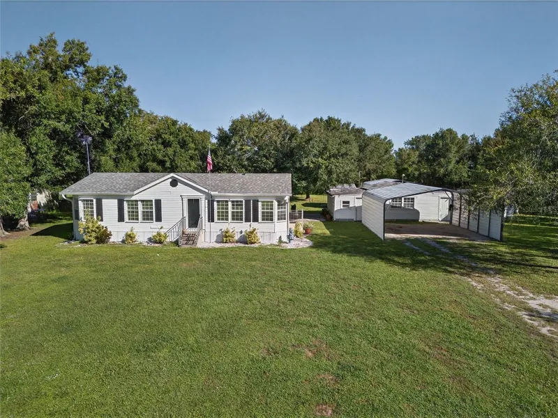 Under contract-accepting backup offers. Quiet country living only 15 minutes from downtown historic Punta Gorda! Nestled on a sprawling 1.17-acre lot, this charming, manufactured 2 bedroom, 2 bath home offers a tranquil setting on a quiet street. The property boasts mature landscaping, and two covered carports—perfect for your vehicles and storage needs. The front carport measures an impressive 30x25, while the rear carport is 20x20, providing ample space for parking. Additionally, a 22x23 workshop equipped with electricity and two exterior A/C units awaits, offering a versatile space for projects. For extra storage, a shed is located at the back of the property as well. This home features a welcoming entrance with steps leading up to the front door, as it sits elevated from the ground, providing a nice view of the surroundings. Inside, you'll find an open floor plan that seamlessly comb...