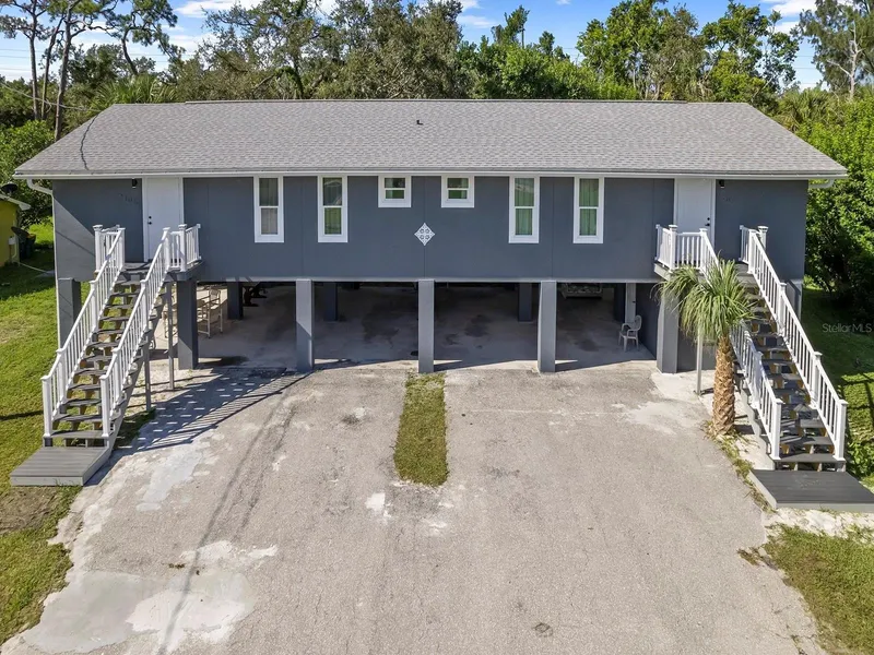 FULLY RENOVATED UNIT in DUPLEX available for Rent! Prime Location in the picturesque neighborhood of Port Charlotte. Situated just a 3-minute walk from the scenic coastline of Bayshore Oak Park and only 3 miles from the famous Fishermen's Village of Punta Gorda, this property offers a perfect blend of serene surroundings and convenient access to local attractions. UNIT features 952 sq ft of modern living space, including 2 spacious bedrooms with balcony access, 2 bathrooms (one with a standing shower), a sleek kitchen with stainless steel appliances and quartz countertops, durable vinyl and tile flooring, a large deck with tranquil views, contemporary finishes, and an in-unit washer and dryer for added convenience. This unit is designed to provide comfort and style, with each detail carefully selected for a modern lifestyle. Workshop/Storage in Parking Area under the Units. 4 Spacious Covered Parking Stalls (Cars or Boats). 10x13 Metal Storage Shed. Space for Outdoor Lounging and Grilling. LOCATION: Short walk to Bayshore Oak Park, where you can enjoy trails, playgrounds, picnic areas, fishing, and boat/kayak access. Port Charlotte and Punta Gorda offer a plethora of shops, dining options, and entertainment. This home is conveniently located to major highways, providing a quick commute to nearby towns and cities, local schools, golf courses, parks, Charlotte Harbor, and beautiful beaches of the Gulf of Mexico.