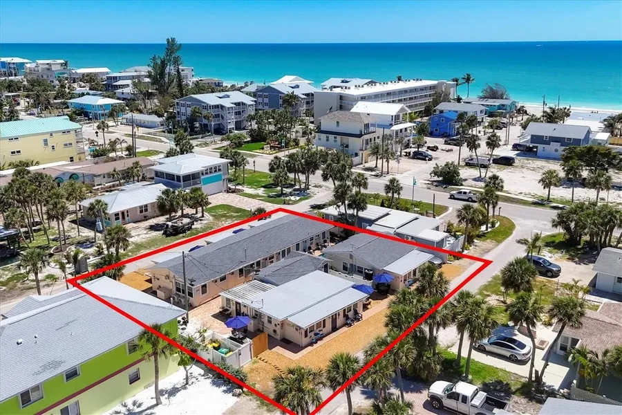 Offering the rare luxury of versatility, providing public BEACH and BAY ACCESS nearby that invites residents and guests to wander from white-sand shorelines to tranquil turquoise waters in a matter of moments, JUST 500 FEET in either direction! The compound itself is a pinnacle in coastal design, sold turnkey furnished with a sophisticated "beachy" aesthetic. Every detail has been considered for the discerning guest, from the newly installed luxury vinyl plank flooring (2024) and crisp white shaker-style cabinetry to the BRAND-NEW stainless steel appliances (2024–2025). The living spaces are airy and bright, featuring modern comforts and IMPACT-RESISTANT WINDOWS on most of the exterior perimiter that offers both beauty and structural peace of mind, in addition the ROOFS were all replaced in 2020!. Spanning multiple structures, the property includes a stately triplex featuring two 2-bedroom/1-bathroom units and a premier 2-bedroom/2-bathroom residence, alongside a secondary building housing a 2-bedroom/1-bathroom unit and two chic studio apartments. For the visionary investor, the estate offers a value-add opportunity in Building 115. Currently a blank canvas, it is awaiting a custom transformation, this space provides the rare chance to expand the compound into a high-performance 7-plex, further elevating the property’s equity and income potential that already has a 12-15% CAP Rate! This unique estate could also serve as the ultimate FAMILY COMPOUND in a rare opportunity to create a legacy where generations can gather to create lifelong coastal memories!