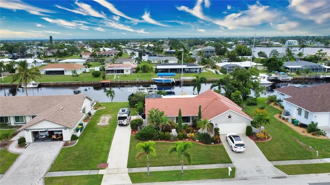 Under contract-accepting backup offers. Direct sailboat water home boasting 3 bedroom, 2 bathroom, 2 car garage, pool. Separate dock and covered boat lift as well as a second drive way and slab for RV. If living on the sailboat water only minutes to open water and Charlotte harbor is what you are looking for, this is the home for you. This home has been lushly landscaped giving it a total tropical feel. It has been meticulously maintained and updated. The home has storm protection and tile roof. This home is bright, airy and has a great flow with separate living room and family room with plenty of room to entertain family and friends. The heated pool and lanai area over looking the water is what you come to Florida for. This home is a must see.