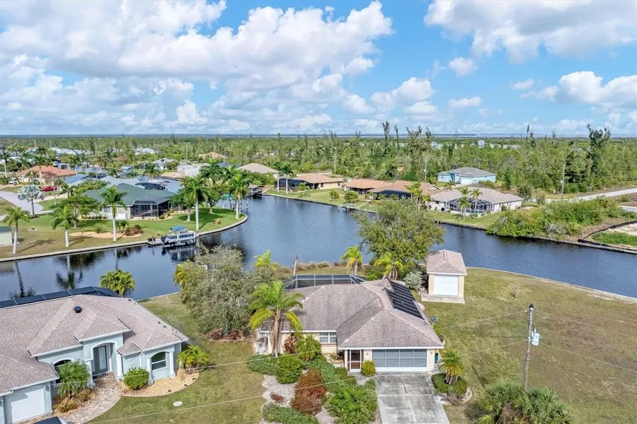 LOCATION * LOCATION * LOCATION * WATERFRONT * POOL HOME * OVERSIZED TIP LOT * 166 ft. of CEMENT SEA WALL * DOCK AND 6K LIFT * SPECTACULAR WATER VIEW !!! In the WATERFRONT BOATING Community of SOUTH GULF COVE With Boating access to the Gulf of Mexico and Surrounding ISLANDS. Only 1 Bridge to a Quick and Easy Out to the Lagoon and Charlotte Harbour. This Home features 3 Spacious Bedrooms, 2 full Baths, OPEN FLOOR PLAN, Vaulted Ceilings, Sliders to LANAI and Spacious POOL area. Living Room has nice Tile floors, Ceiling fans and Light Fixtures. Kitchen has STAINLESS STEEL appliances to include Refrigeator, NEW LG STOVE, NEW LG MICROWAVE, Large PANTRY Closet, Dishwasher, Double Sink, Nice Countertops and Cabinets. BREAKFAST NOOK with large picture window to maximize your WATER VIEW and Sliders to Lanai. Split GUEST BEDROOMS and Full Bath with Tub and Linen Closet. Primary Suite has a Large Wa...