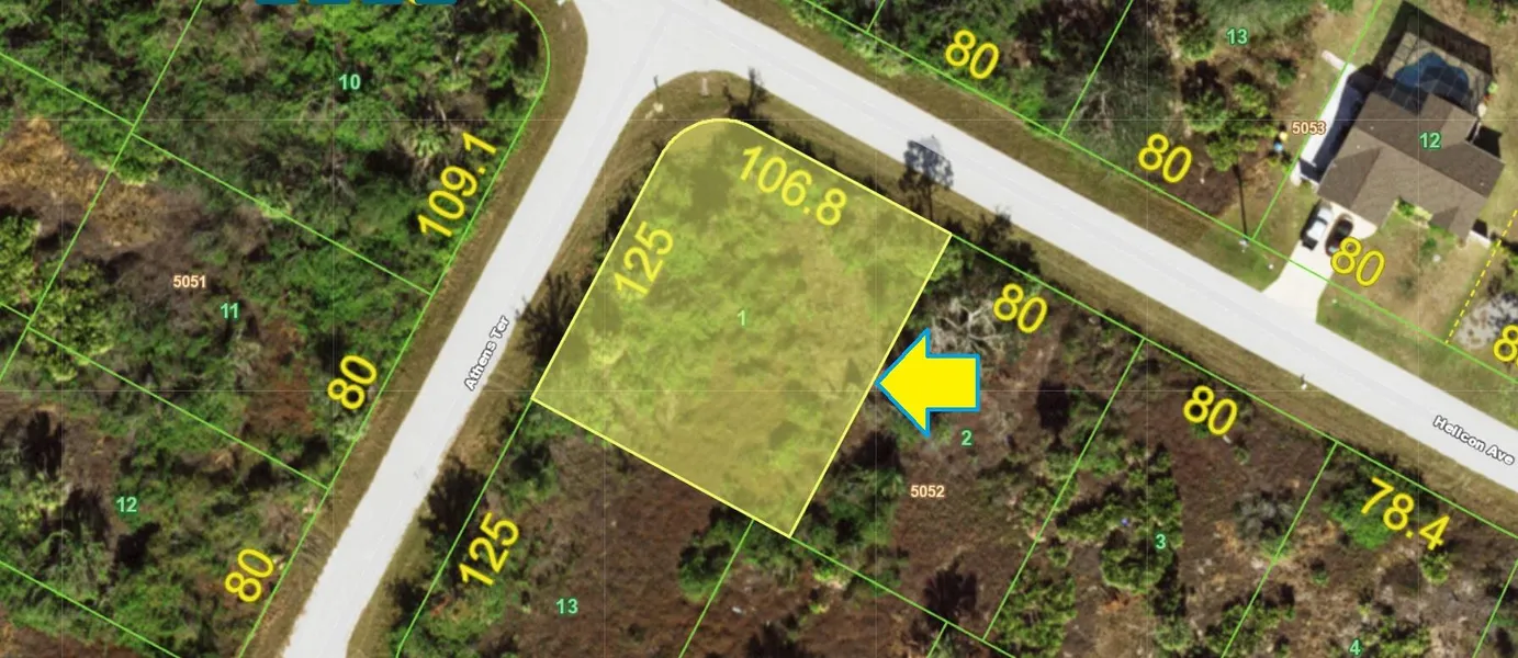 Oversized 0.30 acre buildable residential Corner lot available in Port Charlotte Section 95 of Port Charlotte. Conveniently located, this lot is just 1.4 miles - 3 minutes to the Cove of Rotonda Golf Course, 2.5 miles - 5 minutes to Myakka River Elementary School, and 2.6 miles - 5 minutes to the Winn Dixie Supermarket. From FL-776 (S McCall Road), go south on David Boulevard for .8 miles, and right on Helicon Avenue. The lot will be on your left on the corner with Athens Terrace. (This is an assignment listing.)