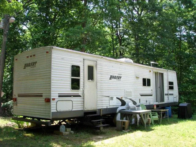 Camper with well and septic is perched high on a knoll overlooking a beautiful 19 ac lake. The land is mostly wooded and fronts on a bold stream and the lake. Great fishing and hunting. The adjoining 15 ac. is also available for $ 45, 000. Recreational rights to a second 35 ac lake is included.