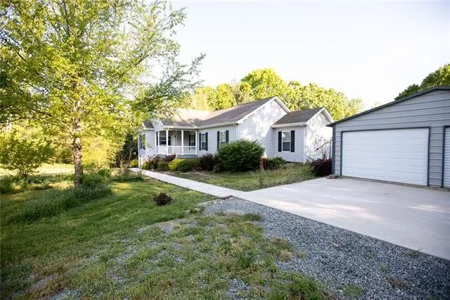 If you love birds, bees, flowers and a wonderful garden this property is for you. This homestead has had love and care in the gardens and plantings that will be enjoyed for years to come. The home has so much to offer. Nice open floorpan that is in move-in ready condition. Kitchen has ample cabinet and countertop work space, dining room and living room are large enough to spread out. Enjoy the gas fireplace for cozy cool nights. Primary suite has walk-in closet and wonderful bath on-suite. 2 additional bedrooms in the split design offer privacy for guests and family alike. Large laundry room exits to a new rear deck. Enjoy the covered front porch and scenic and peaceful country location with over 5 acres to please you. The detached garage is perfect for boats and cars. Additional storage shed on rear of garage is perfect for storage. Enjoy the covered carport, and the hoop house. Meander...