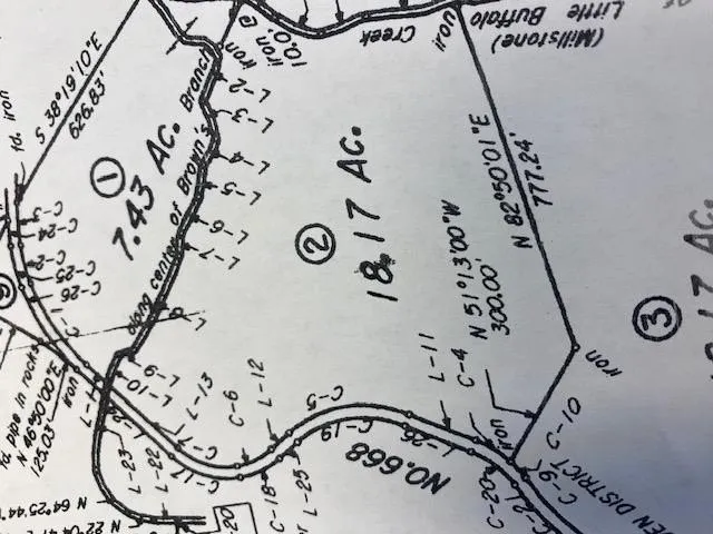 1155 ft. of frontage on Bell Road, fronts on Browns Branch to the North and borders Little Buffalo Creek on the East. Excellent Home site .and or Hunting property. Water boundaries are in CRP Riparian protection program