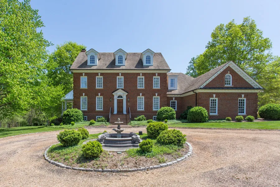 This classic Georgian home was designed by William E. Poole and adapted from the historic Boothe House in Alexandria, VA. The unique detailed entry, brick coined corners, water table, limestone sills, and copper gutters are features of the period. Other highlights are a Hendricks tile roof, lightning rod protection, three-car garage and ample parking space. A Haddenstone fountain accents the circular driveway. The interior floor plan includes first floor master suite with a hexagonal domed ceiling. Wide open arched doorways connect the other first floor rooms, a great convenience for entertaining. First floor trim is classic in the living room, dining and foyer. Master bath and kitchen were renovated in 2018. The kitchen features a center island with induction stove top. Steam and convection ovens, and warming drawer. A slate and brick raised veranda and gazebo railed by cast stone balus...