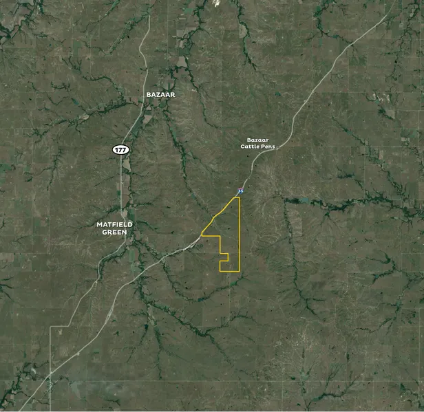 Pristine Kansas Flint Hills Ranch Land! 2,541.10 contiguous acres with ample water and good ranch roads. The Tower Ranch is located in the heart of Kansas Flint Hills, home to some of the most majestic views in the state. The ranch has been part of Bill Haws life work, showcasing his passion for the cattle industry and the purity of the native bluestem pastures. The current owner has spent decades compiling contiguous land to create one of the finest grazing units in the most productive grassland in North America. This ranch has been a great unit on its own or as a complimentary ranch to Bills larger ranch parcels. The ranch has been set up for an efficient cattle operation with multiple pastures units, quality fence, and great roads and access for shipping cattle. The land provides abundant water sources with several watershed lakes, well maintained pasture ponds, and live water creeks throughout the land. A conservation easement runs with the property. Located in Chase County, Kansas. Contact agent for details. The ranch is located near the Bazaar Cattle Pens, a frequent tourist stop, as well as a hub for cattle ranchers. The next owner will have the endless enjoyment of a productive economic unit, tremendous hunting and fishing opportunities, and the finest views the Flint Hills have to offer!
