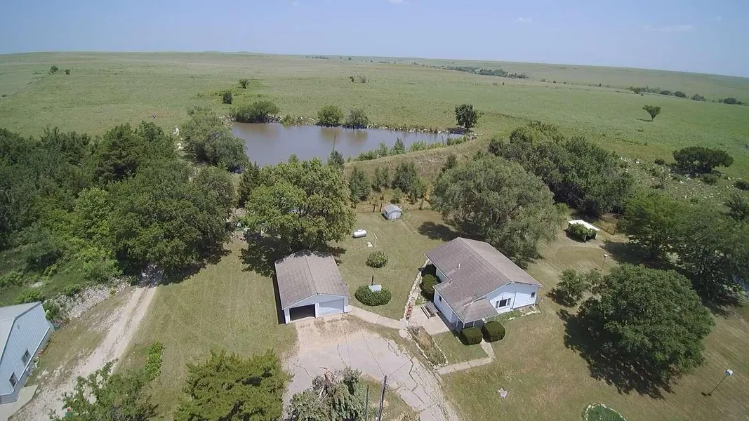 1452 US HWY-50, Strong City, Chase County, Kansas 66869 - Here it is, your dream property! Located in the Flint Hills, this 24.3-acre tract is nestled in the high country and backs up to the Tallgrass Preserve. You have great views, a large pond, pasture for livestock and lots of privacy, all while having less than a mile of gravel and just minutes from Strong City. The home offers 3 bedrooms, 1 bath with 1,175 sq ft, CH/CA, updated windows & metal roof. Outside you will appreciate the detached 2 car garage and the 48x30 Morton Building that is insulated with a concrete floor, electricity, a storm shelter, and a loft for extra storage. This property is filled with character, from the limestone outcroppings to the beautiful wildflowers, dont miss this once in a lifetime opportunity to own a piece of the Flint Hills. Listed at $459,000.00