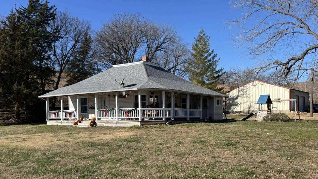 There is so much to like about this property! Located in the Flint Hills of Chase County, this 18.9 acre tract lays between Cedar Point and Clements with great access to Highway 50. The acreage has dramatic elevation changes with amazing views, stacked stones fences and other limestone rocks and outcroppings, plus 2 ponds between the house and the highway. The 896 sq. ft. house built in 1910 has seen a ton of updates since 2015 when it was taken down to the studs and remodeled (new windows, doors, insulation, CA, heat pump, wiring, PEX plumbing, bathroom, kitchen with stainless steel Whirlpool appliances and much more). Since then, the roof has been replaced, as well as the septic system and the well pump. All of these improvements are ready for you to enjoy this 2 bedroom, 1 bath home that features a large wrap around porch, 9 -ft ceilings and open concept kitchen/living room. Out...