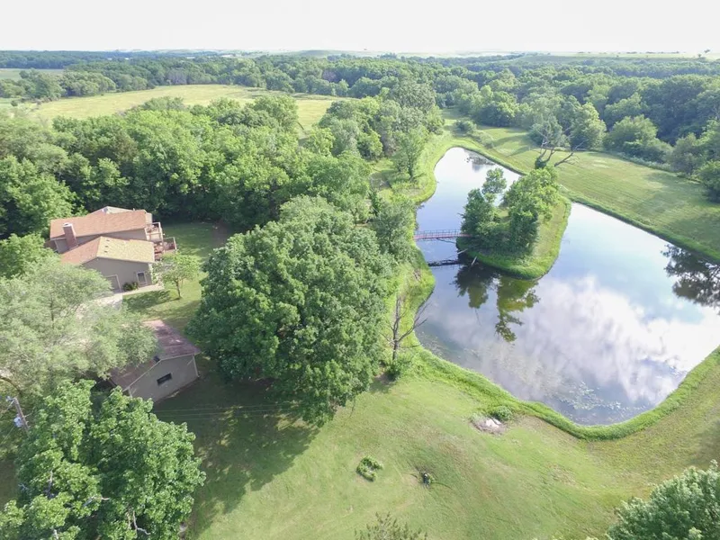 Known for its pure beauty of diverse scenery throughout the lustrous rolling Flint Hills, Chase County, Kansas has been marked as not only the elite cattlemen’s county in the United States, but as one of the top counties in the state of Kansas to retreat and get away for relaxation, adventure, and culture. Located just off HWY-177 north of Matfield Green, Kansas, this 50 acre estate is secluded, yet also easily accessible and in the center of it all! Pulling down the long driveway, one will appreciate the vision that has been captured creating this pristine property. Mature trees, tasteful landscaping, and manicured yard space surround the residence for an inviting impression up to the covered front deck. Built in 1996, this custom home offers 2,439 sq. ft. of living space with 3 bedrooms and 3 ½ bathrooms and endless amenities. Stunning Brazilian Cherry hardwood floors run throughout with solid Cherry wood 6-panel doors, Cherry wood trim, and crown molding wrapping the home. Enjoy the front great room with the massive all-brick hearth and surround, and wood burning fireplace with built-in shelving and backlighting. The open floor plan leads into the dining with one of a kind light fixtures and wall sconces. The kitchen wraps around with endless Oak cabinets, solid surface countertop space, and stainless steel appliances. The kitchen opens to back deck area, and the main floor laundry room and ½ bathroom are just off the kitchen. Main level bedroom with built-in bookshelves, and the main bathroom is finished out with a porcelain clawfoot bathtub and solid surface vanity. The family room opens up with wonderful space to enjoy the incredible views to the backyard and pond. A perfect office space has been created with double doors that adjoin the family room. Upstairs in the loft area, the master suite has been created allowing one to wake and fall asleep with the views from the French doors that lead out to a private balcony overlooking the property. Full master bathroom with double vanity and huge walk-in closest. Full finished basement with family room, additional 3rd bedroom, full bathroom, and utility room in the finished storage room. Oversized 2 car garage with workshop space and storage. New overhead units installed.
