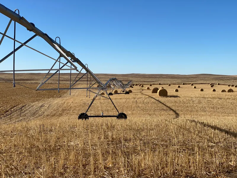 IRRIGATION EQUIPMENT: 8-tower Zimmatic pivot; Western Land Roller turbine pump; 75HP electric motor; AB panel.