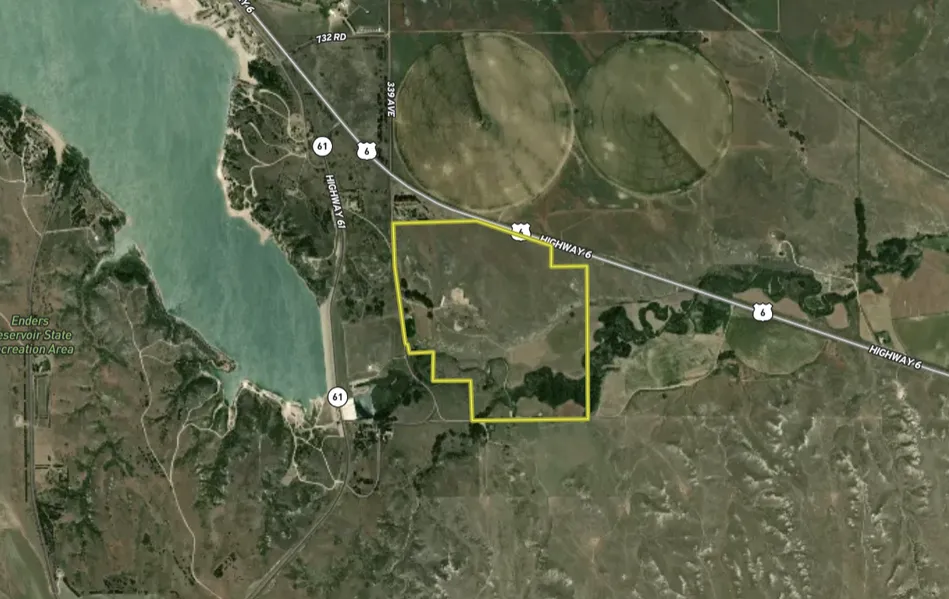 Here is a rare opportunity to purchase Frenchmann Creek bottom acreage in Western Nebraska. For over 1 mile, the creek winds back and forth, creating large water pockets and wetland areas. Located just down from the spillway of Enders Reservoir, this area is known for its premium waterfowl hunting opportunities. Also, along the creek bottom, you will find heavily wooded areas with large cottonwood trees that offers great wildlife habitat and roost trees for turkeys. The approximate 35 acres of sub-irrigated cropland not only provide annual income but also a great food source for local wildlife. A fully fenced pasture is found in the northern portion of the property and has rolling hills with incredible views of the creek bottom below. Along with the incredible view are endless possibilities of potential building sites for the recreational enthusiast or just someone looking to get away from the city. State paved Highway 6 frontage creates easy year-round access and is only a short distance from Enders Reservoir & Imperial, NE. In the past, the owner has sold gravel off of the parcel and has the potential for future income. The property also has a 12" high volume (non-registered) water well that may offer possibilities to the new owner. Give Land Specialist (Daniel Hunning) a call today for more information or to schedule a showing on this very unique purchase opportunity. SHOWING BY APPOINTMENT ONLY!!!