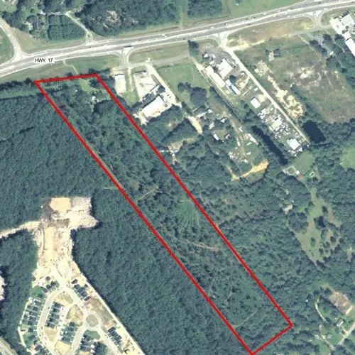 The propertys shape lends itself to commercial development along the frontage of Highway 17 with Walmart and restaurants located just north of the site. Schools located nearby make the site a natural for residential development (potentially multi-family) on the rear of the site.