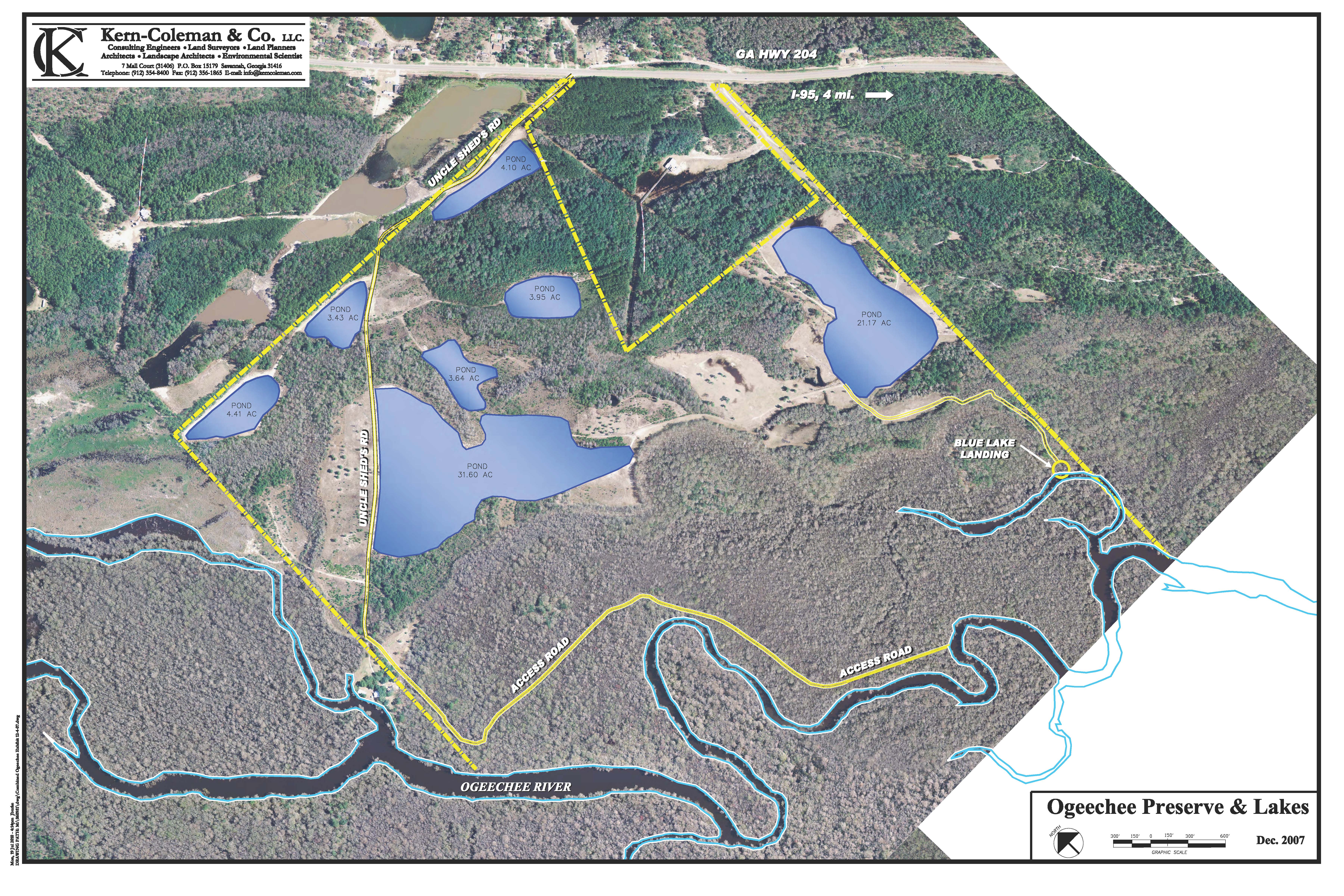 The property is comprised of approximately 125 acres of uplands along with 9 beautiful ponds and lakes totaling some 90 acres. The balance of the property is pristine mature hardwood forest of significant commercial value, along some 2 miles of Ogeechee River frontage that further compliments the propertys natural beauty. An interior road system meanders throughout the property affording easy accessibility and highlighting numerous suitable home sites on or near the water. Additionally, the flora and fauna of Georgias Coastal Plain Region is well represented on this property since the owners have worked diligently to preserve both plants and wildlife as the lakes and landscape were created.