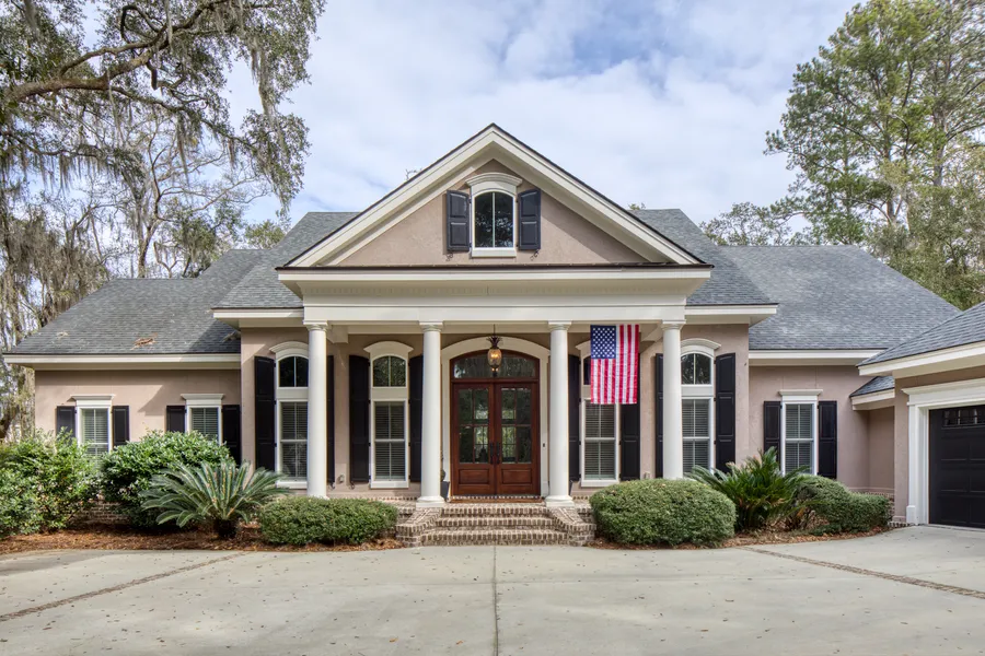 Located in Moon River phase on the Landings, the southeast's premier gated community, this immaculately maintained estate like home is on full size lot overlooking serene lagoon. Hard coat stucco, plantation shutters, tabby driveway embellish 3 bedroom 3.5 bathroom home with easy possibility to add bedrooms .Huge 3 car garage with golf cart entrance is climate controlled. On entering home you will see high ceilings, remarkable millwork and crown molding. Hardwood floors throughout most of house. Formal and casual dining rooms. Living room ,family room each with fireplaces open up to gourmet kitchen, quartz counters, great appliances. Primary ensuite bedroom with large walk in closets , huge designer bathroom on main. Other bedrooms have own bathrooms. Spacious 2nd floor includes a large den, bedroom, bathroom, unfinished room could be an additional bedroom. Covered power screened porch o...