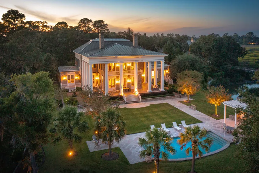 Situated on the finest waterfront lot in Chatham County, this southern mansion built in 2013 is traditional waterfront living with a luxury modern feel. Designed by award-winning architectural firm Historical Concepts, the property maximizes "Casual Coastal Living" at its best. Private, secure, & serene, this is one of six homes on this gated island. Beautiful Historic Savannah sits only a twenty-minute drive away, where restaurants, history, & nightlife define our unique Lowcountry style. Fine custom millwork adorns the home, chef's kitchen & saltwater pool, outdoor kitchen, & deepwater dock on the ICW, making it a dream to host large parties inside & out. Amenities include an elevator to two levels, two laundry rooms, plenty of storage space throughout, an attached garage, sweeping panoramic views of the river and marsh from every window, guest bedrooms with en suite baths, & a primary...