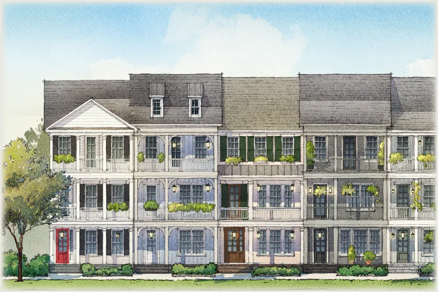 The Isling’s Rowhome harkens to a connected historic Savannah streetscape. 3 levels of expansive porches, tabby fireplace & a flickering gas lantern welcomes you to the front door. At Terrace level, a 2-car garage leads to flex space laced w/ hardwood floors. 1st floor introduces an open concept under soaring, 10’ ceilings. The kitchen provides an oversized island, counter seating & Thermador appliance package inclusive of gas cooktop + built in wall & speed oven. Living space extends to a 2nd porch. Primary suite on 2nd floor w/ exclusive porch, laundry, 2 BR & 1 full BA finish floorplan. Breezes from the Back River, clubhouse, pool & porch views of park all included. The Isling is part of the Savannah Harbor community complete with on-island golf, pickleball, marina & view of City Hall’s golden dome from your walk in neighborhood parks. World renowned historic downtown Savannah is remarkably just a ferry ride or short 2.5 mile drive away. Expected delivery date Winter ‘25/26.