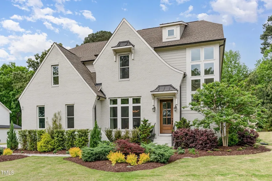 This stunning Parade of Homes luxury residence in Chapel Hill offers 5 bedrooms, 5.5 bathrooms, and sits on nearly 2 beautifully landscaped acres. A long entry driveway leads to a welcoming front yard and elegant exterior. Inside, you're greeted by a light-filled entryway with soaring ceilings and refined finishes throughout. The spacious open-concept living room features an exposed brick fireplace flanked by built-in bookshelves, perfect for cozy evenings or entertaining. The chef's kitchen is a dream, with stainless steel appliances including a gas range and island seating. It also includes an installed reverse osmosis water purification system for clean, high-quality drinking water. A huge scullery with a second dishwasher, open shelving, and prep space makes hosting large gatherings effortless. Modern chandeliers and designer lighting throughout the home add an elegant touch. Off the oversized garage, a spacious mudroom keeps things organized. The main floor also features a luxurious first-floor bedroom suite, ideal as a private guest or mother-in-law suite, complete with its own washer/dryer, California closet, ensuite bath, and built-in sink with mini fridge. Step through the living room to the covered lanai with fireplace - an inviting outdoor living space that feels like a retreat. Upstairs, the second primary suite boasts a spa-like bathroom with a soaking tub, stunning tiled walk-in shower, double vanities, and a large California closet with custom built-ins. Three additional bedrooms and well-appointed bathrooms provide space for everyone. The finished third floor is perfect for a media room, bonus space, or private home office, complete with a full bathroom. Outside, enjoy the expansive backyard with an outdoor deck, already ideal for entertaining and with room to add your dream pool. Located just minutes from NC-501 with quick access to shopping, dining, and UNC-Chapel Hill, this one-of-a-kind home combines luxury, location, and lifestyle. Don't miss your opportunity to own this exceptional property!