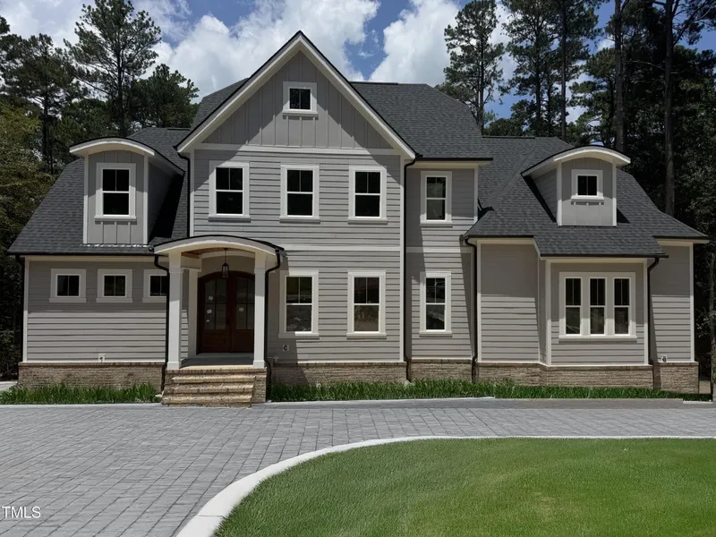 Just 14 minutes south of UNC's campus, this elegant J. Fuller Homes Coley plan sits quietly among mature oaks in the sought-after Legend Oaks community. Glide down the U-shaped drive, park inside the spacious garage, and step into a private 2.2-acre retreat that feels miles away-yet remains close to everything Chapel Hill offers. Designed for effortless main-level living, the open layout centers on a bright great room and chef's kitchen, anchored by a quartz island and designer accents. The primary suite and an additional bedroom with full bath are on the main floor for comfort and flexibility. Oversized four-panel glass sliders lead to a 10'*45' deck and 22'*16' screened porch, extending your living space outdoors and overlooking the large, flat backyard-perfect for future entertaining or your dream pool. Upstairs, you'll find three bedrooms, a full bath, and a generous recreation room offering space for guests, media, or hobbies. Details like black-matte fixtures, accent walls, and a double mahogany front door lend a polished designer aesthetic. Enjoy the balance of privacy and convenience: only 14 min to UNC, 30 min to RDU Airport, and easy access to RTP and downtown Chapel Hill. Stroll under towering oaks, host gatherings on the expansive deck, or simply savor the serenity of your wooded setting-Legend Oaks makes it easy to love life in Chapel Hill.