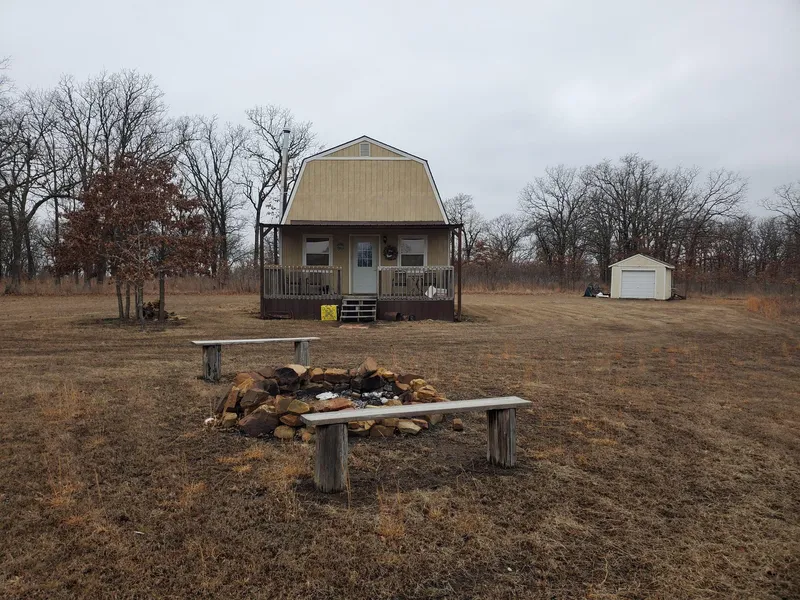 THIS PROPERTY HAS SOLD.This 86 acres M/L is located in the north east corner of Chautauqua county Just south of Longton Kansas. As you pull through the double gates, you will see this Property is set up for the outdoorsman or a great all around recreational property. The property has a beautiful rock out crop that over looks the creek bottom below which is full of game trails crossing the wet weather creek. The pond is stocked for you and your family to stand and catch fish off the dock. The cozy cabin is the perfect place for the family to come to for the week or weekend with heat, air and a wood burning stove is sure to keep you comfortable year round. There are Atv trails through out the property which makes it easier to get around. There is also rustic cabin on the back 40. It is the perfect place to be able to hunt right from the cabin. This rustic cabin is well built with 6 inch wa...