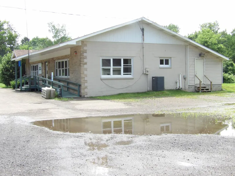 New York commercial land with office building for sale. Near the Central Crossroads at Stow in Southern Chautauqua County locate your business here and prosper! The main building most recently served The Township of North harmony as its Municipal Building and was originally built as a restaurant around 1960. It totals 2250 square feet with a full basement and is mostly cinder block constructed with brick facing. Additions and alterations for needed additional office space have altered the layout over time and could remain as is or easily be converted for your personal needs. In addition to the “Town Building” there is a 30 x 40 steel-sided pole building with its own electric service and concrete floor. There are three parcels on approximately 1.275 total acres. There is ample paved parking now and room for more as your business grows. The zoning is C-1 allowing for a wealth of different uses. The side lot also borders Ball Creek, considered to be a significant stream inflow source for a healthy Chautauqua Lake. A huge plus is the commencement of Phase I of the extension of the sewer lines, which is scheduled to begin now and be completed in 2022. This property is accessed easily for any needed deliveries and also allows your customers to patronize freely with its proximity to Routes 394 and I-86. Located ideally in the busy Chautauqua Lake corridor. No matter your business, opportunity is knocking here!