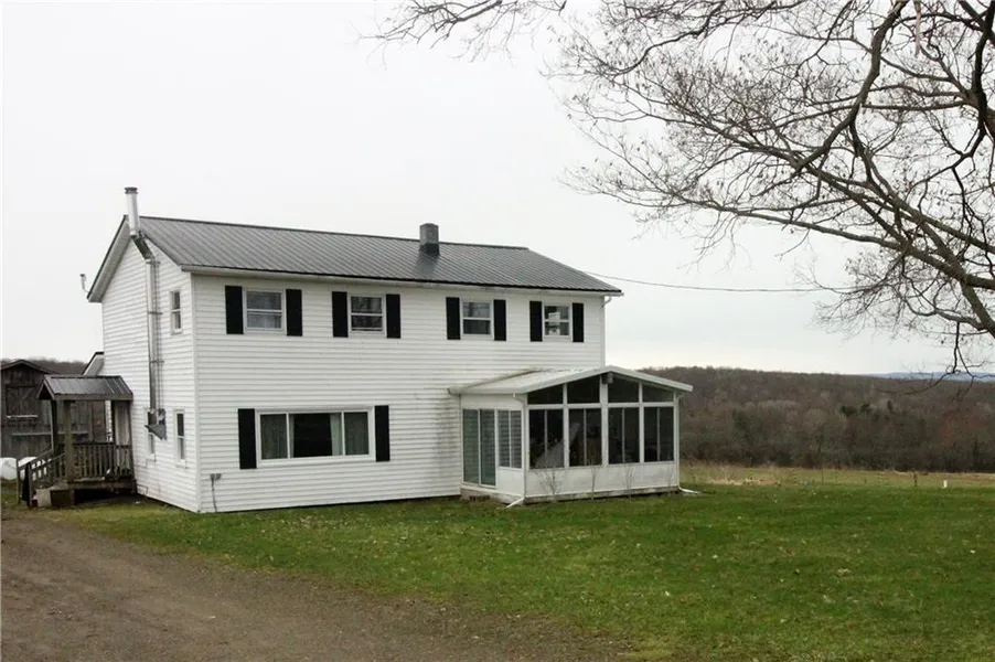 Totally updated 4 bedroom 3 bath home. The kitchen/dining room is an open concept with a large island, tongue and grove wood ceiling with recessed lights. The dining area opens up to an enclosed three season room which leads to a covered porch. The main level also features a living with wood stove, full bath, laundry room, a den, and a sunroom. The second level has three large bedrooms, full bath, large master bedroom with attached bath. The barn is very large and has a riding arena. There is a outdoor wood stove used to heat the house. The barn has a new roof. The pasture has 5 line high tinsel electric fence.