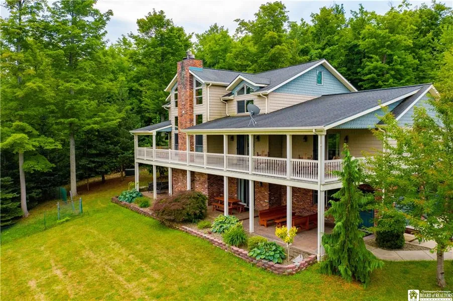 Presenting a Chautauqua Lake house for someone looking for a home with plenty of living space for large families with it's 6 bedrooms. It was built out of meticulously crafted reclaimed barn wood, dramatic vaulted ceilings, open stairway with three stone all masonry wood burning fireplaces with gas starters, custom interior finishes & lighting throughout. Loft area overlooks the large living room, with wet bar in great room, atrium doors to large deck overlooking the lake. Entertain in the Chefs kitchen with large dining area with atrium doors to trex-deck overlooking lake. Spectacular lake views from many of the rooms. The first floor bedroom-suite has ensuite bath with spa tub and steam shower. Multiple atrium doors lead out to the massive deck and patio. The upper level of the home has 2 guest rooms, a full bath and a sitting room with a fireplace. The lower level has 3 guest rooms, full bath and a large family room with a fireplace.