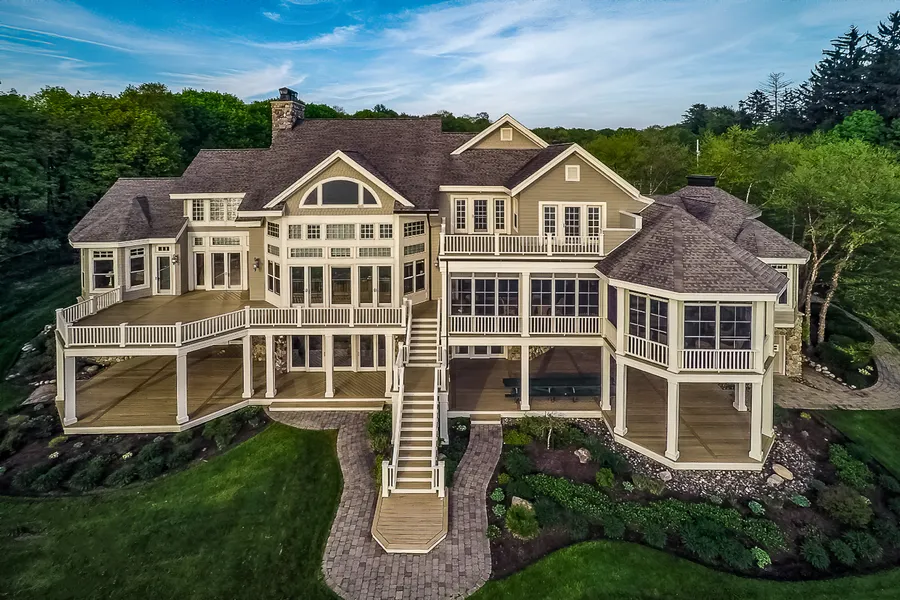 The next phase of your exceptional life starts here. Located on Chautauqua Lake in Western New York, River Rock Retreat is truly a unique and special property. A secured gated private drive winds through a mature forest leading up to the captivating custom built home on nearly 19 acres with 375' of lake frontage with views of the iconic Chautauqua Institute. The architecturally striking three level home is surrounded by manicured perennial gardens, sweeping lawns and includes a commercially installed putting green with three sand traps and three hitting stations. Enter through the double doors to the main level of the home featuring an inspiring great room with spectacular views and a 4 story Pocono River stone fireplace with radiant hearth. The main level offers 3 spacious en-suite bedrooms with a master suite featuring a grand bathroom with large open shower, jetted soaking tub, separa...