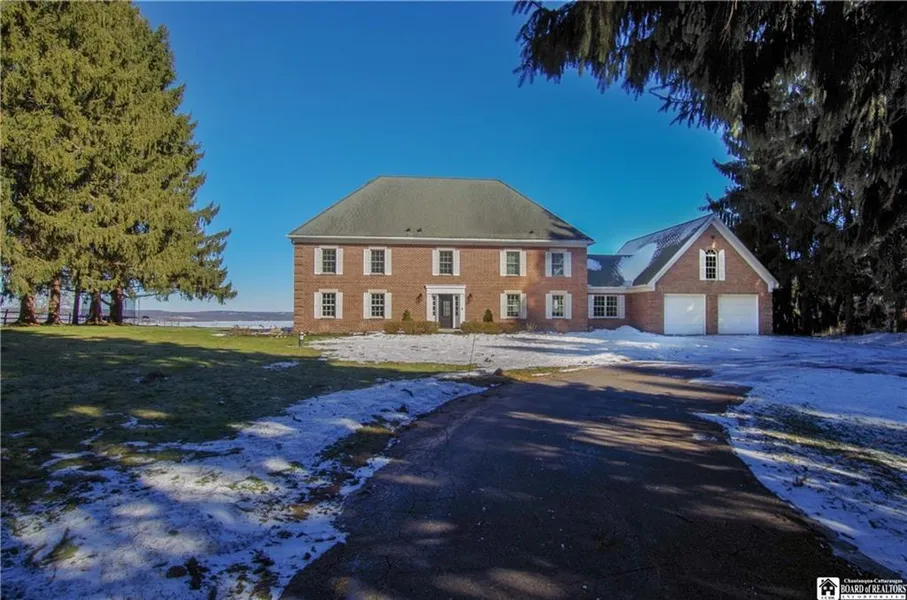 More than a home, it's Lifestyle! This prominent Georgian style residence is a luxurious example of quality and craftsmanship. Perched atop nearly four acres with panoramic views of Chautauqua Lake and includes over 4000 square feet of living space. It's stately brick facade has turned heads since built in the 90's. Enter the grandiose two story foyer and be welcomed home. The first floor living area has many potential configurations to suit your lifestyle. The sprawling living area can be used as the main gathering room or furnished with dining ensemble to create an open living/dining combo. Original formal dining room is currently a bedroom(by furnishings only). The kitchen includes eat in area, pantry and lake views. A study offers great space to work from home. Mud room, and 2 half baths round out the 1st floor. The master suite, 3 bedrooms, common bath and laundry are located on the...