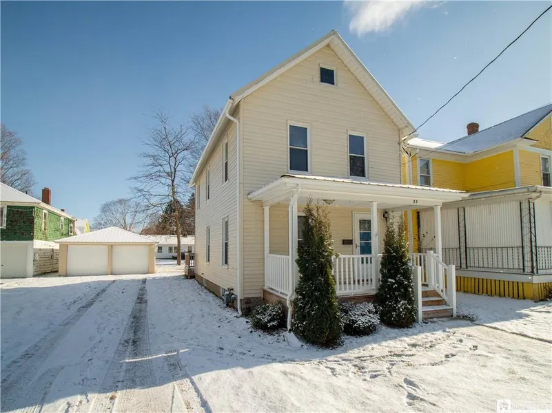 Delightful, turn-key home located in the historic village of Westfield. This wonderful walkable community has so much to offer and is located close to Lake Erie with nearby access to the I-90. This home was completely renovated in 2018 and is truly move-in ready! The charming front porch welcomes you to the home which features an open concept living/dining/kitchen area on the first floor with all upgraded finishes . The second floor includes three bedrooms all with laminate flooring and a full bath with tub surround and tile flooring. The attic is fully insulated and has a pull down ladder for easy access. Back on the first floor you'll find access to the laundry/mudroom off the kitchen which leads to the rear deck and the beautiful big backyard! Detached garage has new electric service and metal roof with lots of opportunities to create a work room or additional storage. Move right in and enjoy the new year in this wonderful home! Delayed negotiations to occur on 1/14/2022.