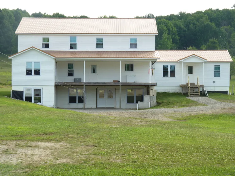 Large, spacious 6 bedroom, 2.5 bath home built in 2019 with over 3000 square feet of living space and wood floors situated on 39 acres made up of 5 parcels. The home has 2 large covered porches in the front and rear. Walking in the front door you will see a large entry room with a corner office room and stairway to a large open lower level basement area with concrete floors. The large open kitchen has numerous cabinets along with a gas stove and refrigerator. This area also provides an ample dining room space. The living room is open with a doorway to the front porch. There is also a large bedroom with 2 closets along with a full bath on this level. On the second floor, there are 5 bedrooms with closets, a full bathroom and a large common area for gathering. The home has its own gas well and is heated with radiant floor heating. A large shop building is on the main road heated with radia...