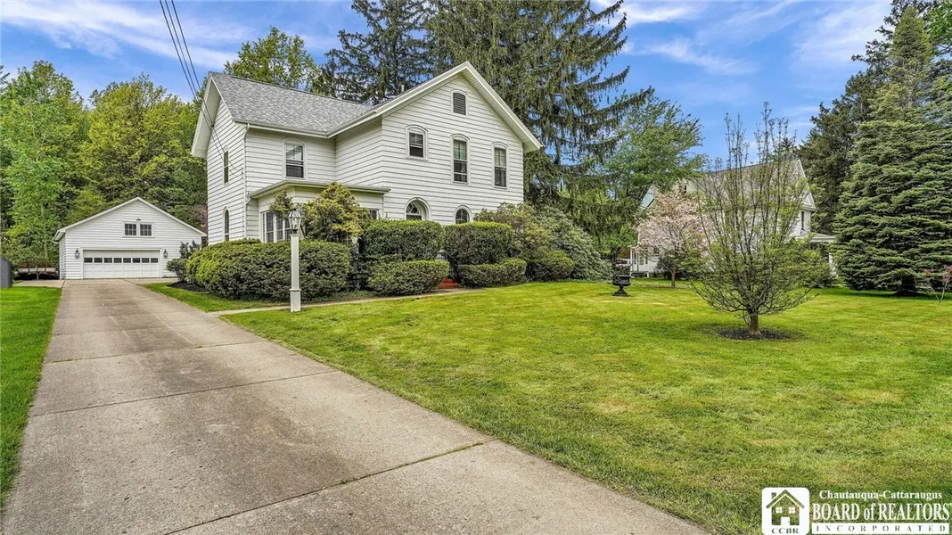 Discover your dream home! This exquisite property in the heart of Fredonia, NY, offering acreage along with unparalleled convenience and comfort. A magnificent classic home featuring 4 bedrooms and 2 full bathrooms, ideal for anyone seeking a modern lifestyle in a vibrant community. Situated on Central Ave, this meticulously maintained home is minutes away from the college, parks, Lake Erie, shopping and thruway. Enjoy spacious living areas with original oak hardwood floors, inside shutters and an open staircase. The gourmet dual kitchen boasts quartz counters, high end stainless steel appliances, pot filler, heated floors and instant hot water at sink. The bathrooms are luxurious, and the sunroom is a perfect detail. Step into a private backyard retreat; perfect for entertaining or relaxing. The back porch features antique rod iron railings and canvas shades; overlooking a beautiful bri...