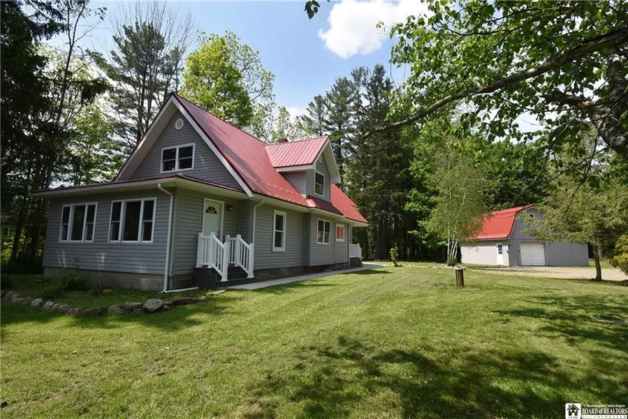 This four bedroom completely renovated home is in the Panama school district and the Town of Busti and less than 1/2 mile from Chautauqua Lake, situated on a 10 acre lot. The interior is fresh and new throughout boasting a brand new kitchen with granite counters and stainless steel appliances. In addition the two full and one half bath are also brand new. A first floor laundry off of the family room is a plus. Wood and laminate floors adorn the first and second floors. Vinyl windows and siding in addition to the red metal roof make this a must see that is ready to move right in. A two story detached garage (24x16) with one single garage door and walk up second floor has so many possibilities and uses. A private wooded yard completes the property. A must see!