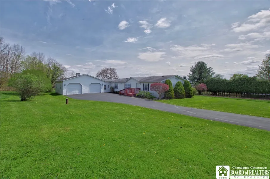 An outstanding setting just on the outskirts of town with a little over 3 acres of privacy. This manufactured home boasts an open floor plan with vaulted ceilings and is secured on a permanent poured concrete foundation. Primary suite includes full bathroom with walk in shower and is on the opposite end of the other bedrooms offering privacy. The great room is perfect for keeping residents and guests together. The kitchen has loads of cabinet space and comes equipped with major appliances. Each bedroom boasts semi walk in closets. Convenient first floor laundry. For those who need work space or have a few toys to protect you will love the attached garage. Rear deck overlooks the private yard. The enclosed porch has loads of natural light and keeps you protected from the elements. The basement has tall ceilings and stays dry. This space can be utilized to fit your lifestyle and has great...