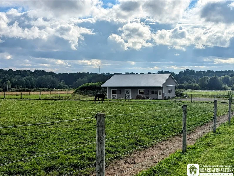 Beautiful 16.2 acre property in the Bemus Point school district and minutes from the village/Chautauqua Lake. Land near Bemus Point and Chautauqua Lake is a rare find. Location is quiet and peaceful, yet close to Jamestown and local amenities. The property has already been cleared and includes a new insulated barn. The barn has 6- 12' x 12' horse stalls, a 12 x 12' wash station and a 12' x12' office area. 220 amp electric. Electric fencing surrounds the areas for the horses and cattle. There is a cattle shed/barn and a white fenced corral. If you are not quite ready to build your dream home, there is an RV hook up in the barn. The seller will not subdivide and property is being sold in it's entirety. However, this property is in a well sought after area and school district and could be subdivided as building lots by buyer. Owning land is the American dream and now is the time to get the peace and serenity that rural living has to offer.