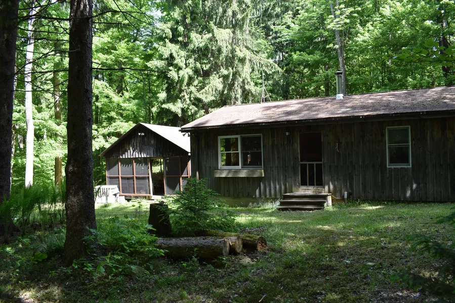 New York forested land with cabin, pavillion, pole barn, stream and adjoins NYS Land for Sale: The property is almost entirely forested with a mix of hardwoods and softwoods. There is a nice stand of maple-cherry-ash timber in need of thinning on a portion of the property, an area of young, developing future hardwood timber, and a beautiful mature Norway Spruce plantation.The capstone to this property is the nearly 1,000 sf, 3 bedroom, 1 bath camp, nestled back nearly 1,000 feet from the road into the beautiful backdrop of the Norway Spruce behind and hardwoods in front of the camp. The camp is extremely well-done and has a water well, septic system and underground electric to it. The interior has tongue & groove pine on the walls of the open floor plan living room/kitchen area as well as in the hallway to the bed/bath area giving the camp a nice, warm, cozy and welcoming feeling when you walk in. There is a woodstove in the living room and electric baseboard heat in the bedrooms. The 3 bedrooms all have carpeted floors. The full bathroom is complete with a shower stall. The foundation is a poured concrete slab (crawl space) with cinderblock walls. This is a dry space and there is a sump pump here to keep it that way.In addition to the camp, there is a nice picnic pavilion approximately 24 x 28 in size. The pavilion has electric and the screened-in space is about 20 x 22, making it an ideal spot for gatherings of all sizes in any weather, day or night! There is also enclosed storage within this building that is an area of about 8 x 22, making a great place to store all the extras need for all the entertaining you can do here.There is also a pole barn included that is about 32 x 40 in size that is wired for electric, but not currently connected. The barn is of board and batten construction and has a gravel floor and windows to pull in natural light. There is also another steel structure used for storage that is from an old fallout shelter and a small box trailer that is also used for storage.The deer and turkey sign here is abundant due to the food and cover on this property and hunting is good for both. Bear pass through here as well. As part of this property, there is another approximately 6 acre parcel south of the main camp parcel. This section has its own driveway into it, is completely wooded and also has a nice stream flowing through it, adding more diversity to the ownership and certainly to the hunting options. If the total acreage isn’t enough, both parcels directly adjoin NYS Forest Land, all as part of Hatch Creek State Forest, which is 1,283 acres in size. Hunting, hiking, snowmobiling, cross-country skiing, horseback riding and more are allowed on the State Land. Hodge Road is also a snowmobile road in the winter, providing direct access to the best snowmobile trails in the County!The property is in the center of the County, so it is equally close to Lake Erie, Chautauqua Lake, Chautauqua Institution, Wine Country, Amish Country and so much more!There is an existing gas lease on the property that provides a royalty from a well on a neighboring property. The seller will be reserving the royalties from the current lease and will be transferring all other oil, gas and mineral rights to the new owner.