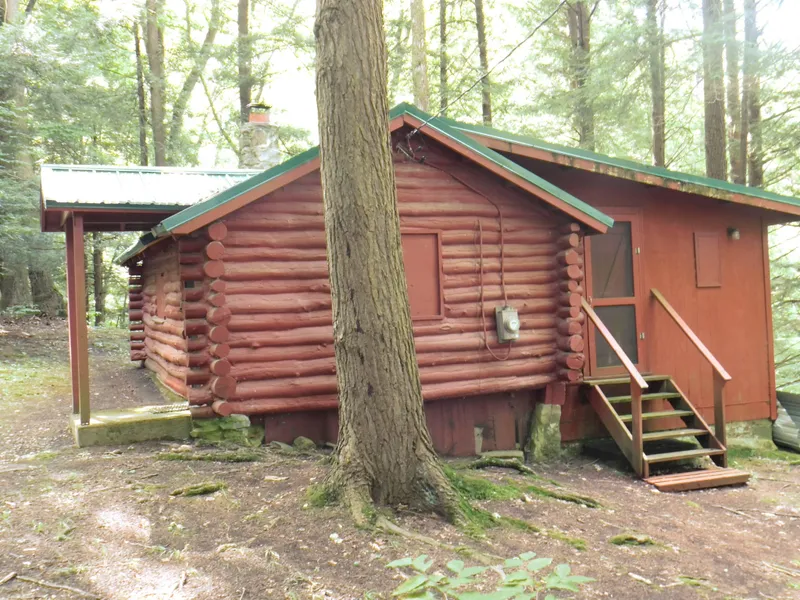 New York land with cabin, stream and adjoining NY State Lands for sale. This cozy Log and frame Cabin with Stone fireplace is nestled in tall Hemlocks and overlooks upper Goose Creek on less than an acre. The bonus this location offers is easy access across the road to over 2,500 usable public acres of the North Harmony State Lands for Hunting, Hiking, Cross Country Skiing and other Outdoor pursuits. The Western Leg of the Chautauqua County Overland Trailhead can also be accessed right here as well! The cabin has electric service and uses propane for cooking and convenience but is otherwise off the grid utilizing water carried in and an outhouse. Yes you can have it all. Your own affordable cabin in the woods plus plenty of land within easy reach. Relax and enjoy this great hideaway to get away from it all.