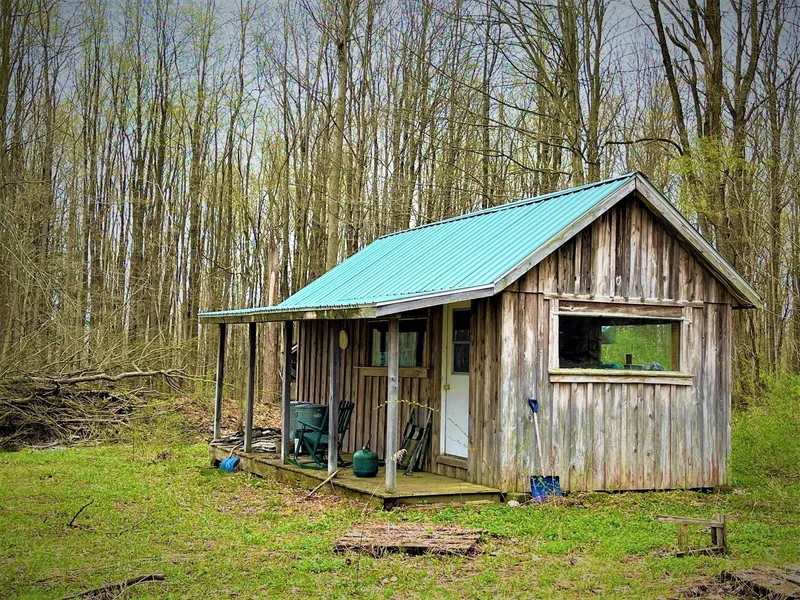 Hidden away on a ridge is this unique hunting and recreational cabin. This cabin is truly unique, as it is a metal container construction faced inside and out with wood to maintain the rustic feeling and experience you are looking for when you seek a quiet place or a great hunting location. Recently logged, the property has a perimeter road that navigates the entire property. The stand of trees is densely populated with cherry and maple, with a creek in the front and a ravine in the back of the property. There is a shed and lean-to near the cabin that is the perfect place to dry store your ATV or buck pole your deer. The cabin has a small wood stove for heat and bunks for four people. The covered porch is a great place to start your fall morning with a cup of coffee in your hand. Check this property out; it is priced well to sell. - Deer Hunting - Turkey hunting - Cabin - Trails -Creek - Timber rights to convey – GMO’s do not convey - Off-Grid -