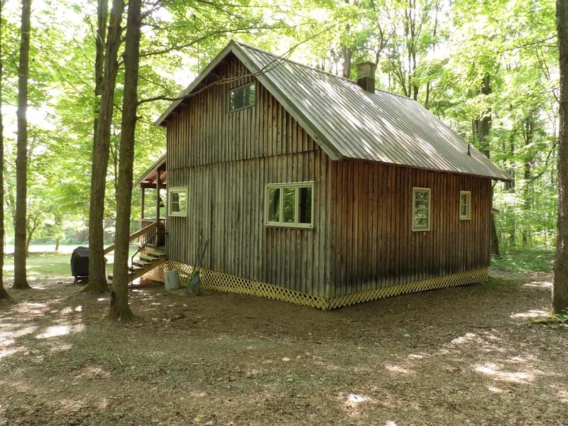 The cabin is well constructed and ready to host your next outdoor adventure. Enjoy your quiet morning coffee as the sun rises over the pond. The cabin is nestled about 600 feet back from the road on a solid, gravel drive. Inside, the flooring is brand new, as are the kitchenette, interior doors and tankless hot water heater. The kitchen and bath sinks and shower are plumbed and ready for the new owners to connect them to the outside well if they wish. Currently, this property is off the grid, with electric available at the road or the new owners can easily hook up a generator if desired. There are two Lovable Loo composting toilets inside and a compost bin outside. Current owners carry in water from the outside hydrant. The interior lights and cook stove are propane and the wood stove keeps the cabin toasty. The property is being sold as-is. Wall-mounts, pictures and furniture do not stay.