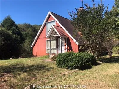 Lots of potential with this Aframe design, sits back off road with lots of privacy, mostly level lot