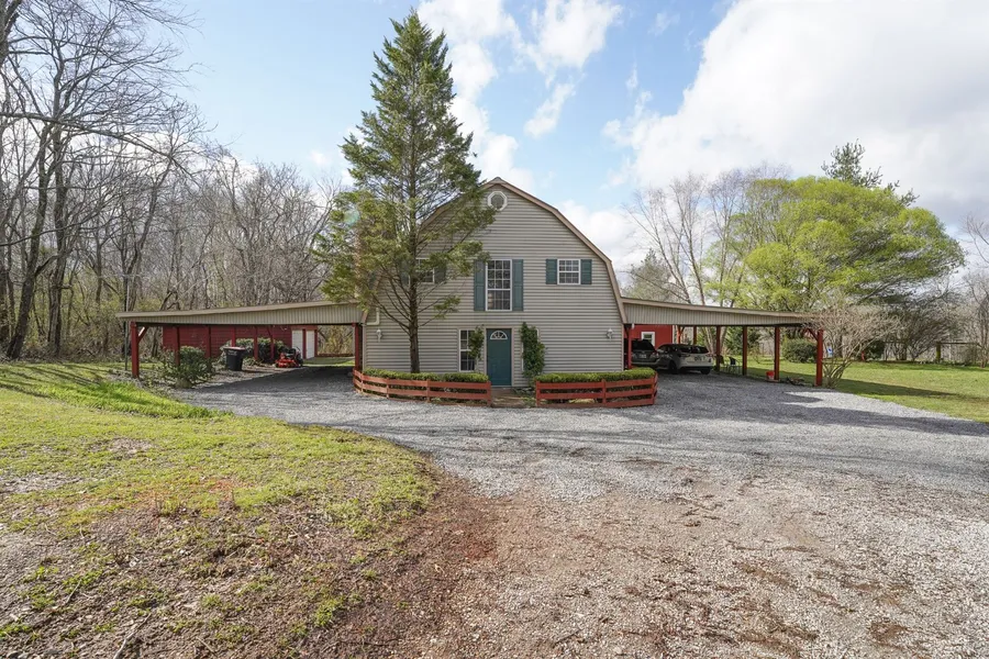 Countryside retreat on over an acre lined with mature shade trees! This is a rare find 25 minutes from Downtown Nashville. Huge detached heated/cooled Wood Shop with above 500sf Music Studio, separate freestanding Ceramic Studio, additional 2 car storage garage, entertainer's patio, screened in porch, and 2 separate carports. And that is all before you step foot into the home! Custom built with well thought out details throughout! Wood Beamed ceiling with wood burning stove in living room makes for the perfect spot to unwind at the end of the day! Open concept living on main floor, 3 bedrooms upstairs with quaint sitting area. 3rd floor loft perfect for additional space and storage. Make this your own private oasis or it would make an amazing AirBnB! Invisible dog fence is also in place!