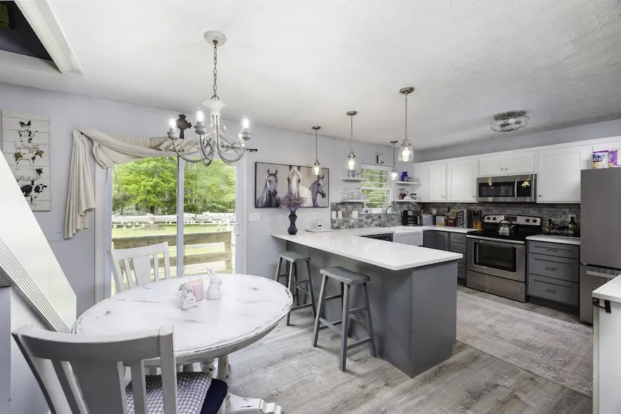 Great home 30 minutes to Nashville, 15 to Fairview, Bellevue and 20 to Dickson. This home has been completely renovated from floors to roof to include new windows, paint ( ceilings too) to new carpet in bonus room upstairs with its own deck and entrance. 3 out buildings do not convey, yet they are negotiable. Both bathrooms redone with a walk in tiled beautiful shower in guest and new vanity. Primary Suite has a walk in closet and beautiful bathroom with tiled tub/shower and new vanities. Front Patio for sunrises & upper deck or back patio for sunsets. Outside space here is fantastic. Fenced in back & side yard and a separate dog run. Quiet neighborhood has been great for raising kids and animals. Great location! Home Warranty offered. Primary Suite furniture for sale. California King & Living room furniture too.