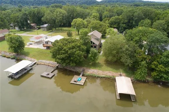Treat yourself with luxury~3 levels of living space w/elevator~custom built & decorated & furnishings all remain~Showers feature programmable water thermostats~Gourmet Kitchen~Breathtaking floor to ceiling windows overlook river~2FP~Hardwood floors~pool table~Cathedral celings~recessed lighting~Outdoor entertaining space w/wood stove & master grill~2 Boat Docks~3 lots in one