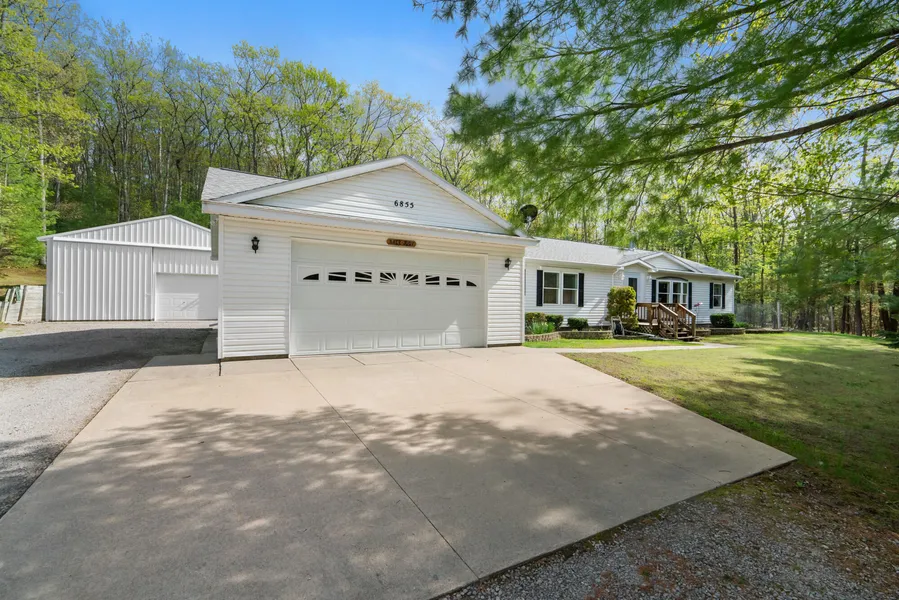 Tucked away on a peaceful 4+ acre parcel just minutes from town, this beautifully maintained 3-bedroom, 2-bath home offers the perfect blend of privacy, space, and convenience. With conservancy land directly across the street, you'll enjoy a protected natural view. Step inside to discover a warm and inviting interior featuring an open-concept layout, master suite, cathedral ceilings, and wood floors paired with luxury Coretec vinyl. The spacious cook's kitchen boasts generous counter space—ideal for entertaining or everyday living. A cozy fireplace with a gas insert adds ambiance to the main living area. The home includes a large 24x30 attached garage that offers ample room for vehicles and storage. The garage has a 220 plug and generator plug. For even more versatility, the impressive 30x40 pole barn features tall doors to accommodate a boat, RV, or travel trailer. The pole barn has a 1...