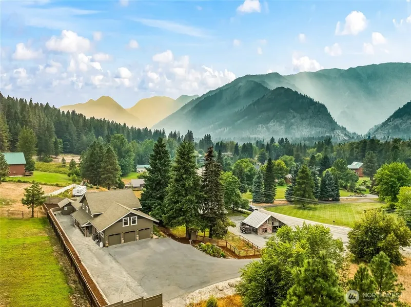 Just off the beaten path and close to everything Leavenworth offers, this peaceful retreat gives you room to relax and recharge. The main home offers 4 bedrooms (primary suite on the main floor) and 4 additional rooms that flex for hobbies, fitness, work, or guests. Cozy up by fireplaces in winter or enjoy the pool, hot tub, and mountain views all summer. A charming 1906 1bed/1bath ADU adds space for extended living or rental income. Every detail reflects warmth, comfort, and livability. No HOA, just space, serenity, and smart design.