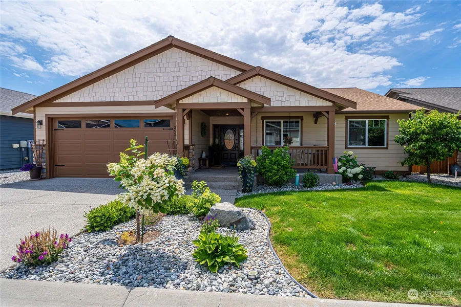Welcome to The Village at Lake Chelan! This 3 bed/2.5 bath home offers a convenient living experience in a friendly, gated community. Beautiful wood trim, granite countertops, hardwood floors, and a custom river-rock fireplace create an inviting ambiance. The spacious primary has a walk-in closet and an en-suite w/ dual vanities, tile shower, and a corner tub. 2 additional bedrooms, a utility room & 2 car garage provide ample space for all your needs. Outside, discover the extremely well-manicured grounds where you can unwind on the front porch swing or take in scenery from the rear deck, complete with sun cover, custom lighting & gas fire feature. Great location by the POOL & just 1 block from shopping, winetasting & entertainment.