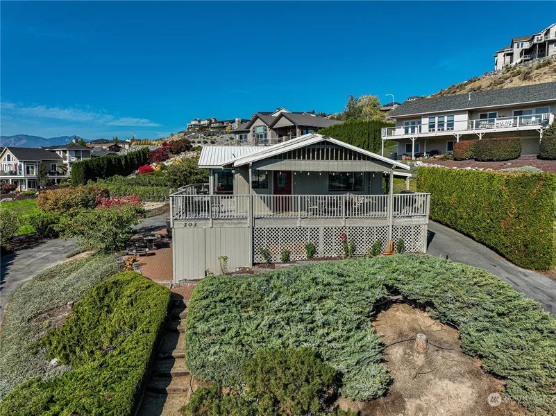 Huge Views in the Willows section of Chelan Hills! Large lot in a quiet secluded setting, and only a 2 min walk to Chelan Hills community beach. On the main level is an open floor plan and ample sized windows that provide an abundance of natural light and big views. A modern yet classic style kitchen recently updated. The primary bedroom suite and second bedroom, dining room, living room with fireplace, surrounded by a wraparound deck. Downstairs is another bedroom, bathroom, utility room, and family room with fireplace. Outside is a private patio with a hot tub, a large circular driveway, a carport, and an abundance of room for parking. Chelan Hills offers waterfront parks, 2 pools, buoys, boat launch, docks, sport court & more.