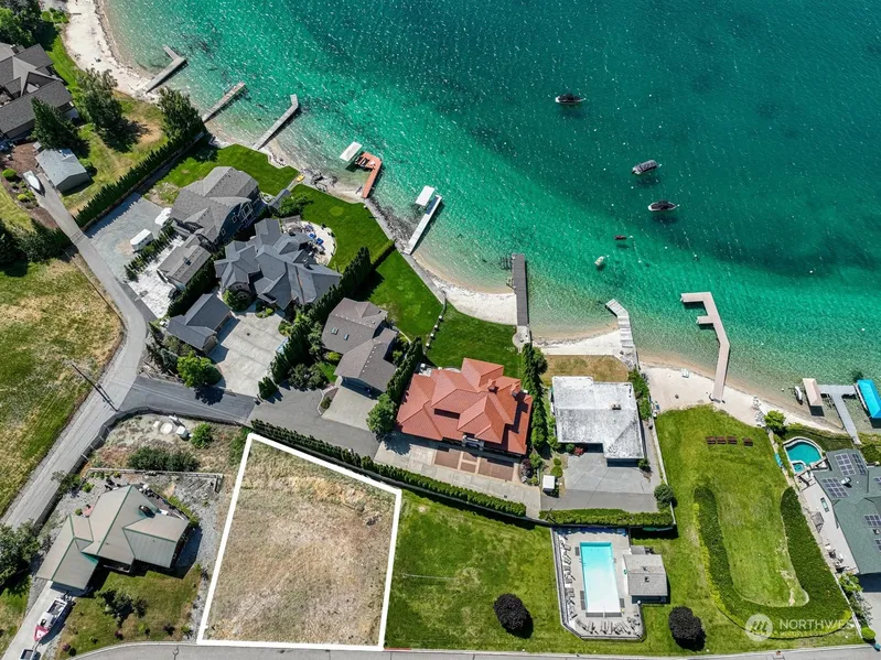 Key Bay community waterfront lot with HOMEPLANS for 4 bedroom (2,432 Sq. Ft.) lakehouse w/ contemporary wood & stone exterior options and a collapsible back wall that opens to an outdoor living space w/ fireplace. Floor-to-ceiling windows & 13' ceilings provide great natural light and amazing curb appeal. This exceptional lot stands out as one of the largest & best-located lots in the development with an adjacent green space that creates the perfect property-enhancing buffer. Enjoy a heated POOL, volleyball court, picnic area, multi-slip dock, boat buoys, bathhouse, and a pristine sandy beach swim area in one of the warmest bays in Lake Chelan. Build your dream & keep your boat in sight & on the water for relaxing sunset cruises in Key Bay!